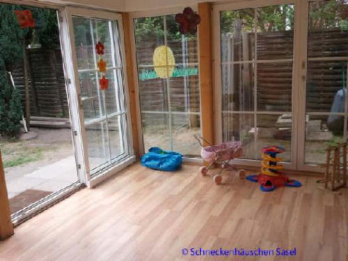 Der Lieblingsraum der Kinder, unser Spielzimmer, mit direktem Zugang zum Garten.